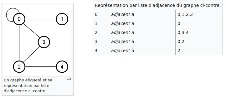 Cette représentation est particulièrement adaptée aux graphes creux (c’est-à-dire peu denses), contrairement à la matrice d’adjacence adaptée aux graphes denses.